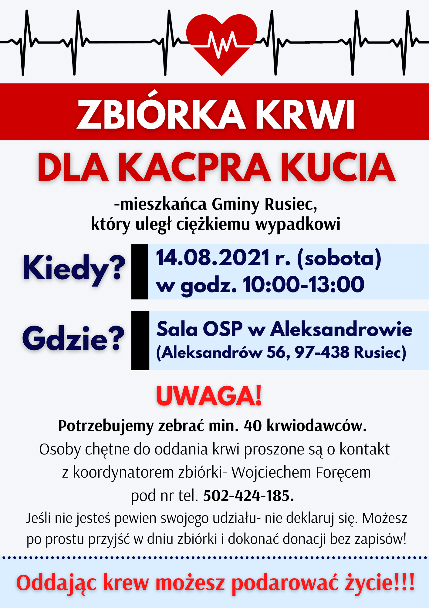 ZBIÓRKA KRWI DLA KACPRA